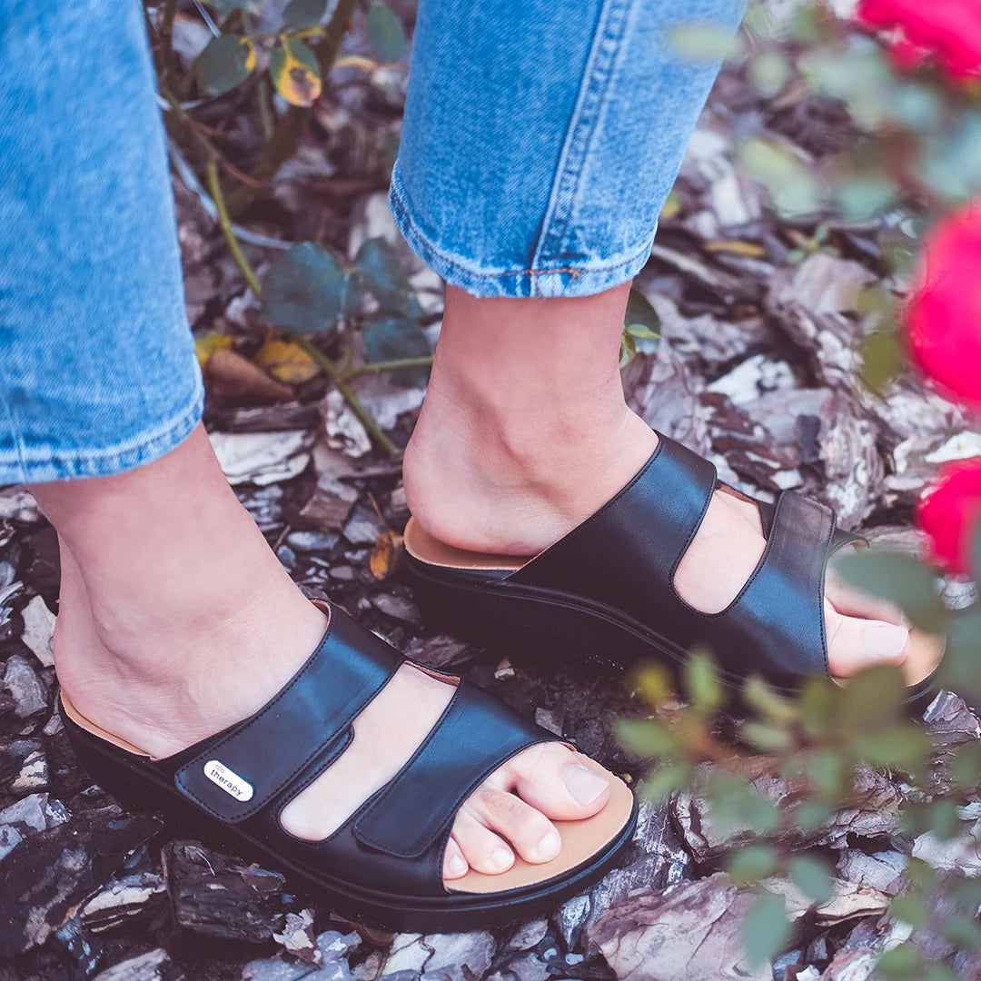 A stylish and supportive sandal designed for all-day wear, offering superior breathability, comfort, and adjustability.
